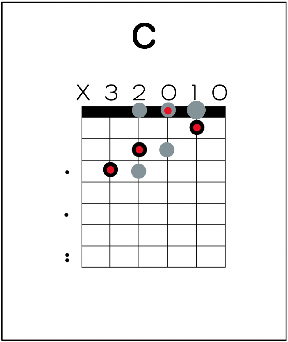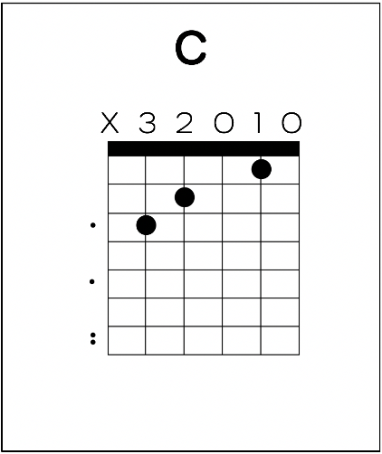 • Black dot – chord shape (fingers)